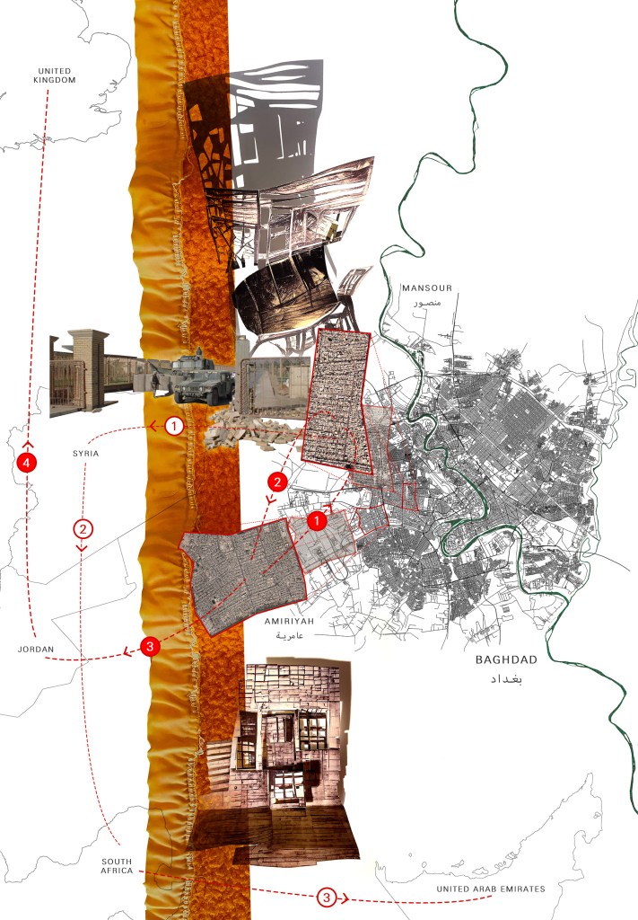 This piece is a joint autoethnographic map of the seemingly fleeting yet deeply traumatic few months that followed the night Baghdad was struck in March 2003. Sana and Farah lived in Baghdad within two kilometres of each other, their friendship was strengthened by a shared fear of violence in addition to their family ties. They were both recent university graduates, Sana having just completed her Masters a week before the invasion of Iraq, while Dr Farah Murrani had recently graduated from Baghdad University Veterinary School. Their map traverses material and the spatial quests in seeking refuge, from the makeshift corner in Sana’s house nearby the built-in cupboard in the living room, to Farah’s dining room table that was large enough to have Sana’s family of four nest underneath it, to the old blanket that took on so many different functions: memory of childhood; warmth; intercepting shattered glass from reaching one’s body; and a hiding place found in the seam of the blanket where money was kept safe as Sana fled the country a few months later; and finally, to Farah’s major contribution to her field, veterinary medicine, in finding refuge for all the animals in Baghdad Zoo just before leaving Iraq a few months after Sana’s departure.