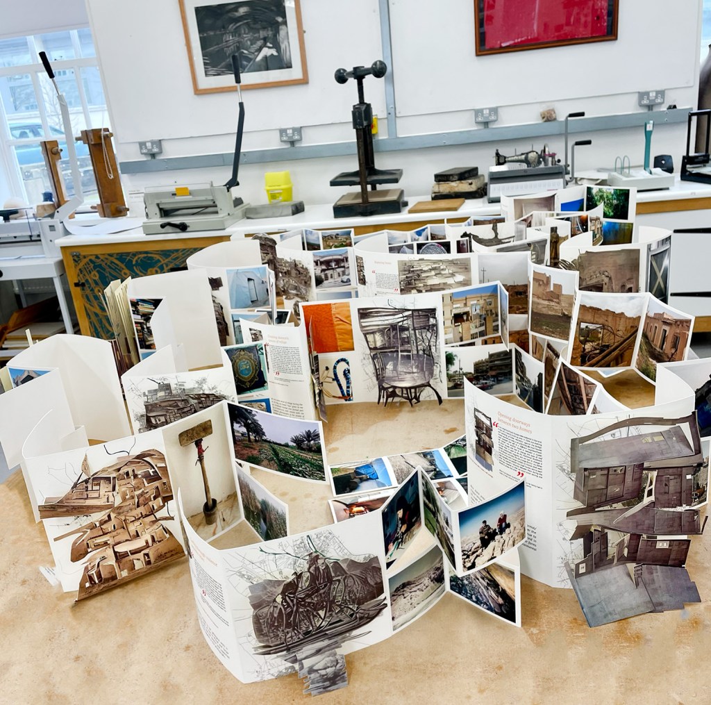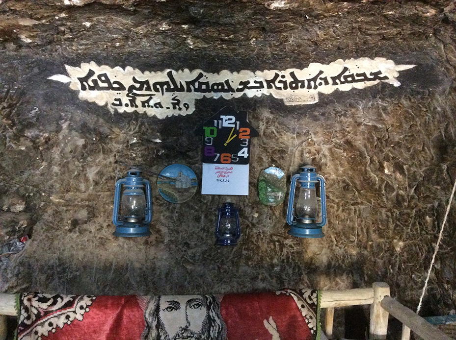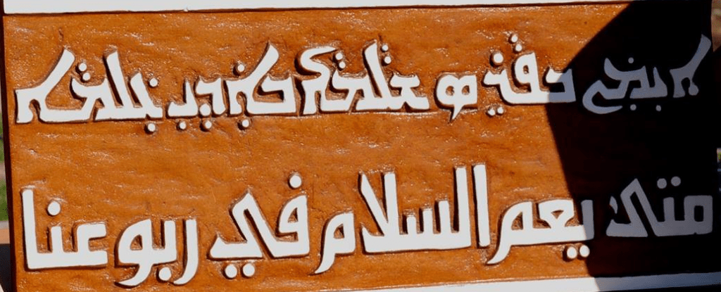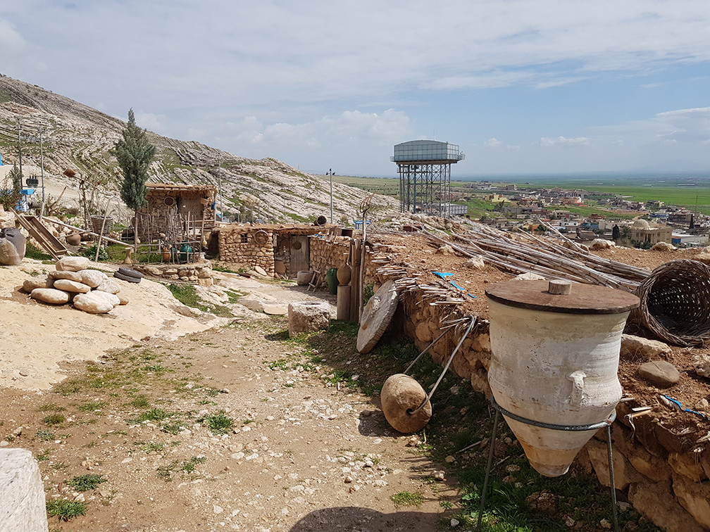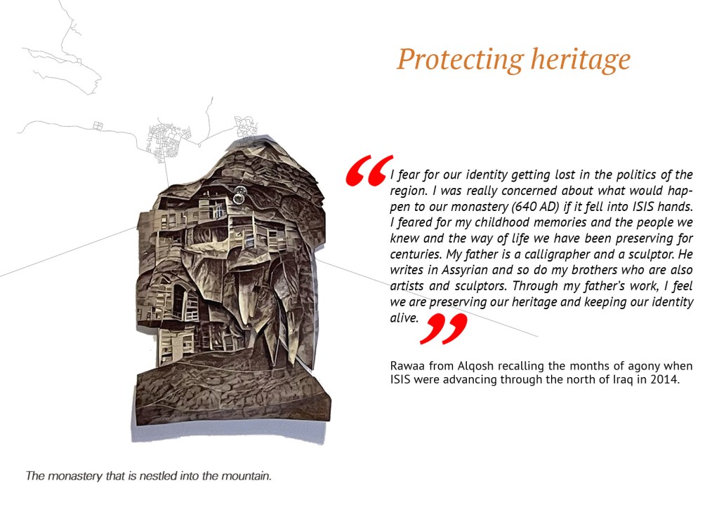 Rawaa shared photographs showing the town of Qosh with its hilly landscape and ancient mud houses. She shared her family’s heritage through her father’s and grandfather’s ancient craft of calligraphy and engraving on wood and stone in Assyrian, as well as sculpting. Their work can be seen everywhere across the town.