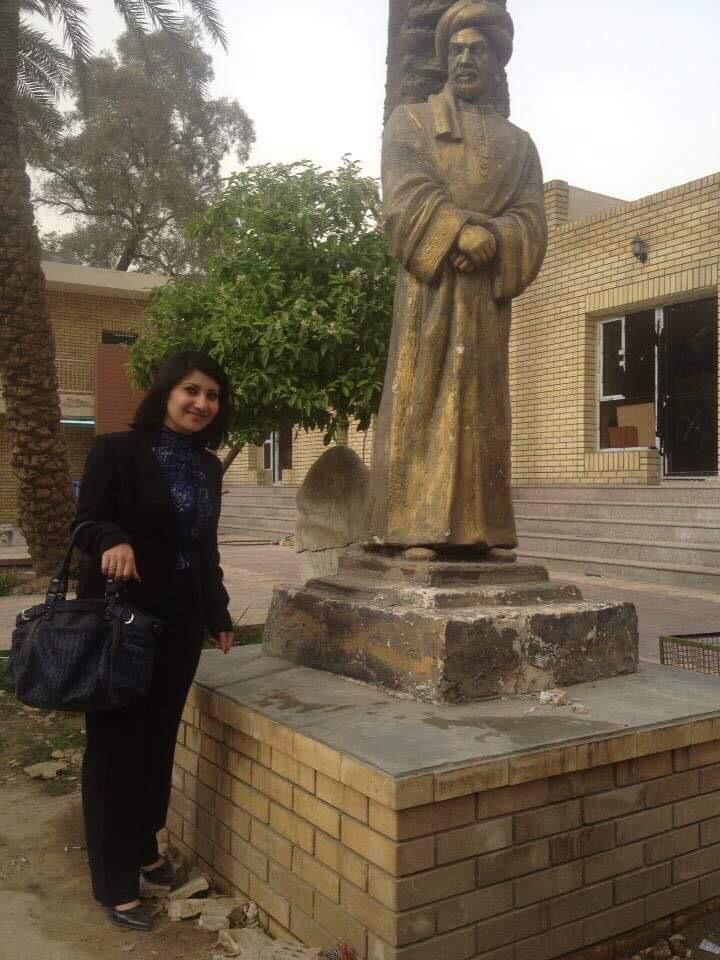 Basma shared several photographs that depict two different states of being: refuge and violence. Photographs of her enjoying life in the city and next to statues and sculptures of famous literary and art figures in Iraq’s history sit next to photos of urban ruin and decay in the city around the time of the US-led occupation in Baghdad.